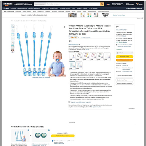 le porte-sucette a des ouvertures dans lesquelles l'enfant pourrait avoir les doigts piégés. de plus, le porte-sucette est trop long, il peut s'enrouler autour du cou de...